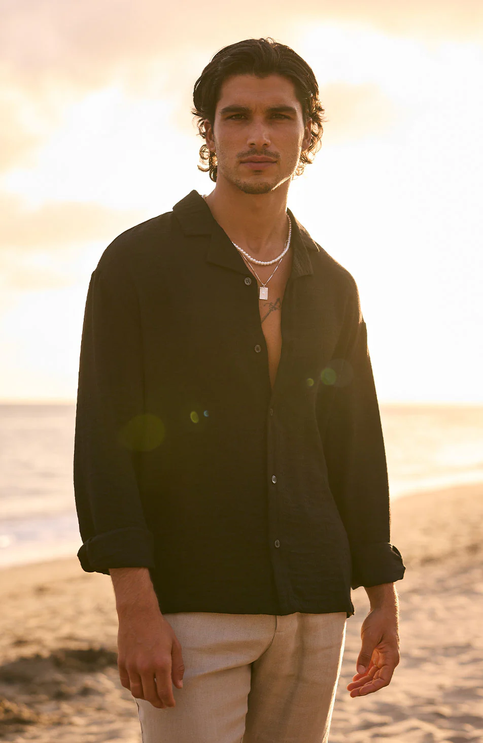 - Model is 6'2 with size M chest, wearing a size M