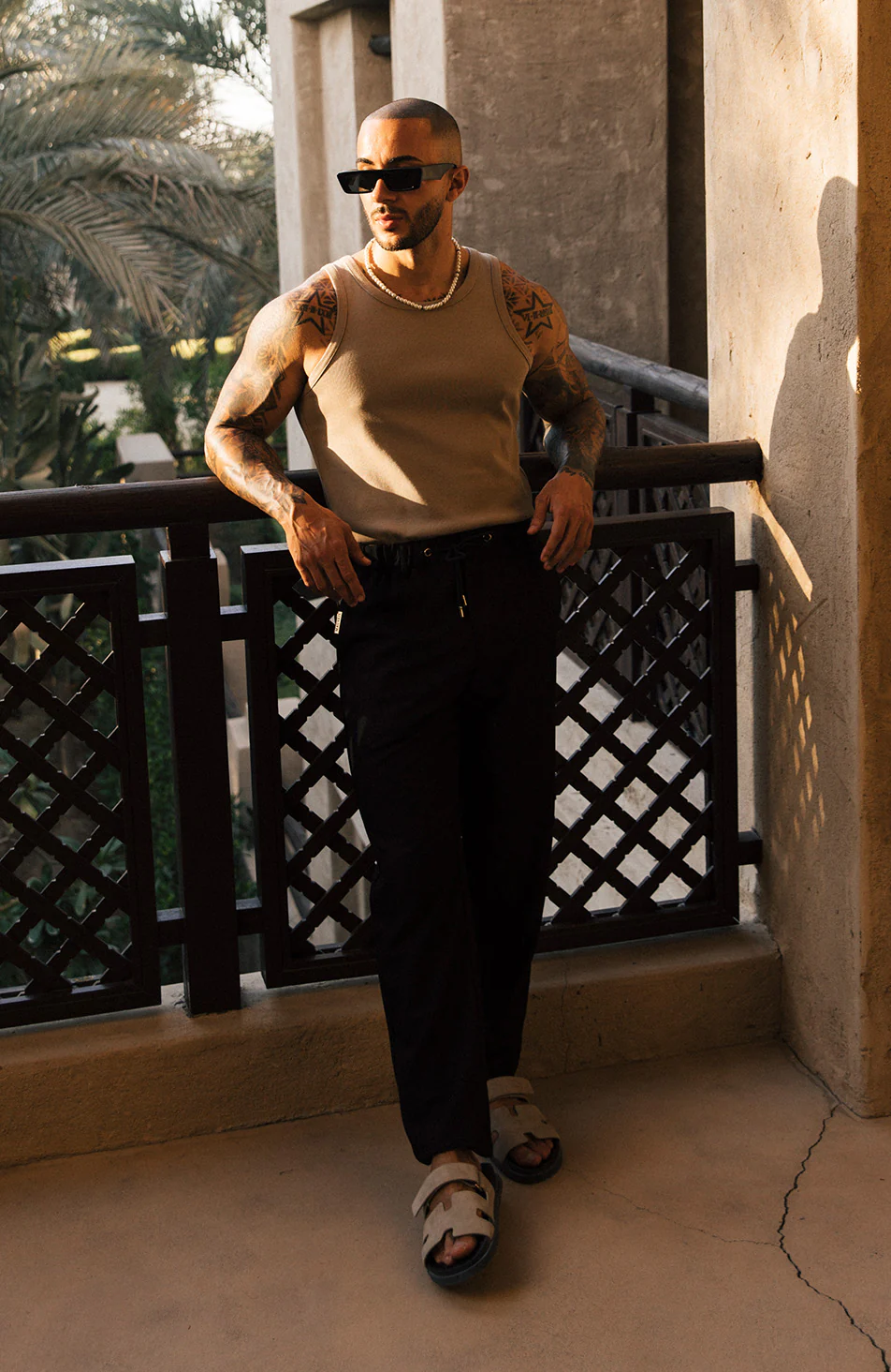 Step up your game with the Signature White Vest – made for those who want to keep it fresh and clean. The luxury soft-finish ribbed fabric feels smooth, while the muscle fit shows off your shape without compromising comfort. The MAUVAIS metal plaque at the hem brings that extra edge, adding a premium touch to a simple piece. Perfect for those chill summer days, pair it with a revere shirt for a laid-back vibe that still hits hard on style.